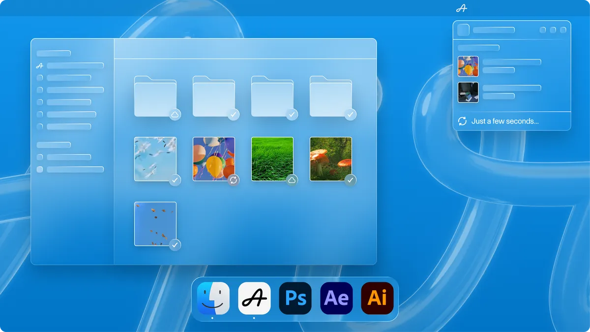 Move beyond folders and file paths. Organize images, video, documents, and design files in visual libraries designed for creative workflows.