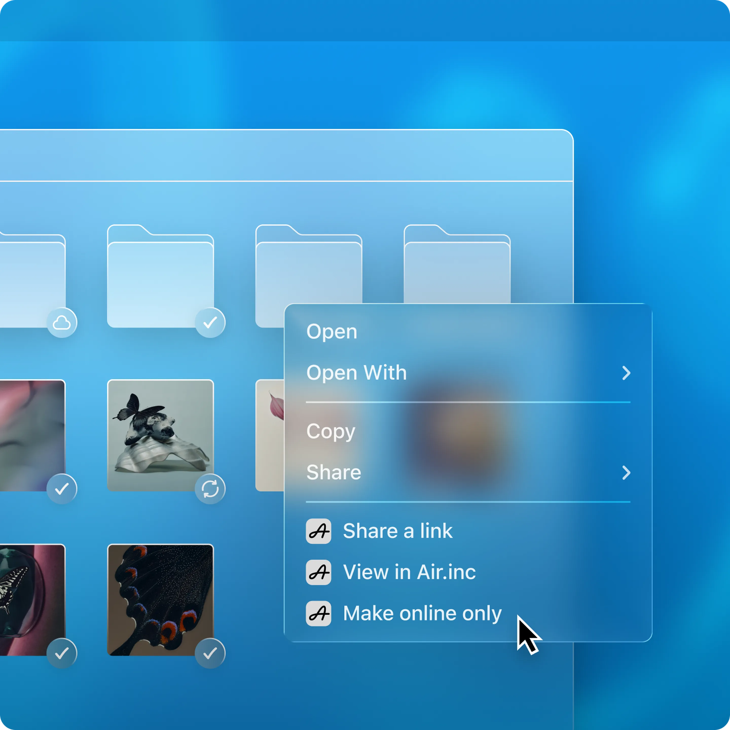 View, search, and manage your entire Air workspace right from Finder. Available for macOS 11 (Big Sur) or higher.