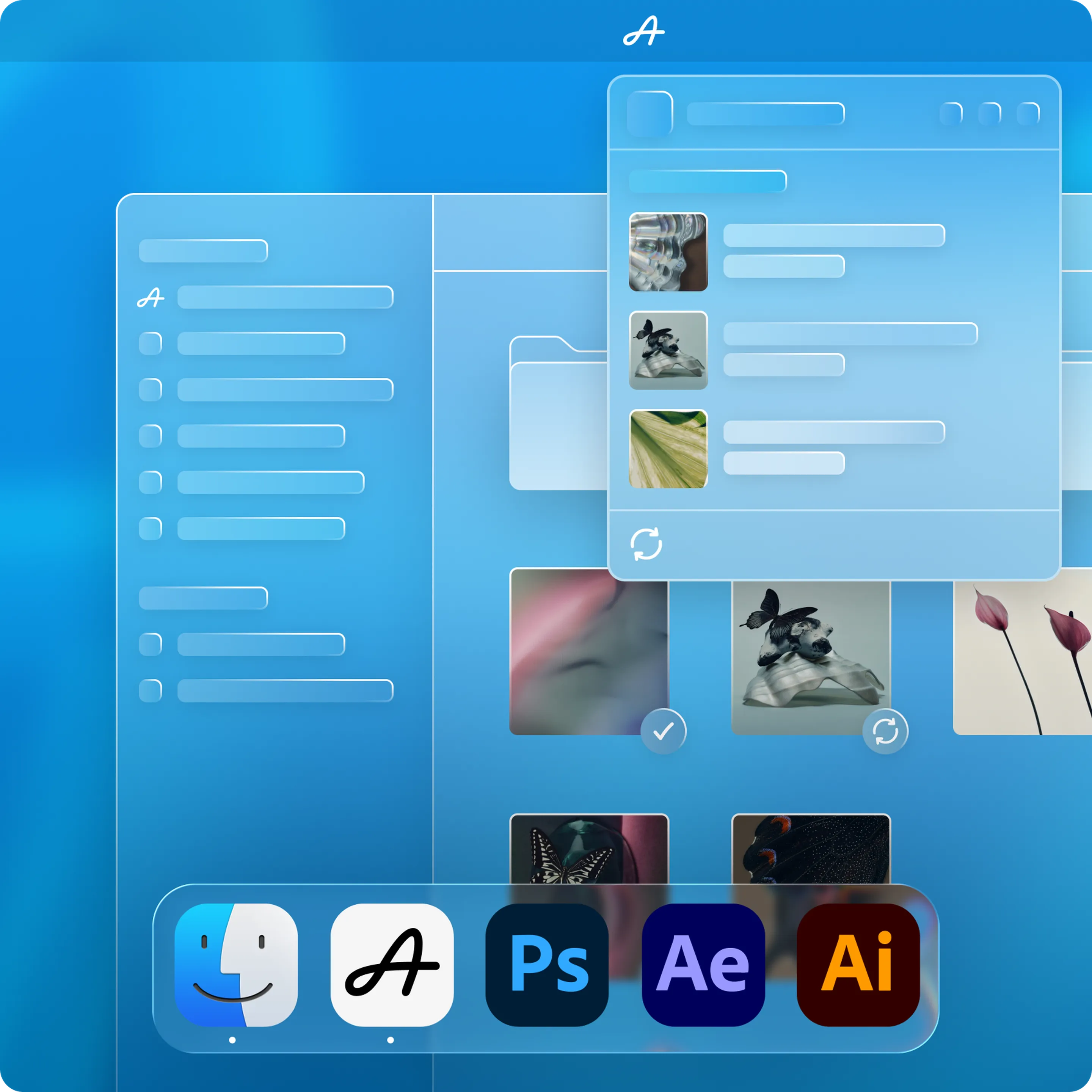 Move files between Air and your desktop without ever opening a browser. Air Flow keeps everything up to date automatically, so you can open assets in tools like Photoshop or Premiere, make changes, and save them right back — no exporting, no uploading.
