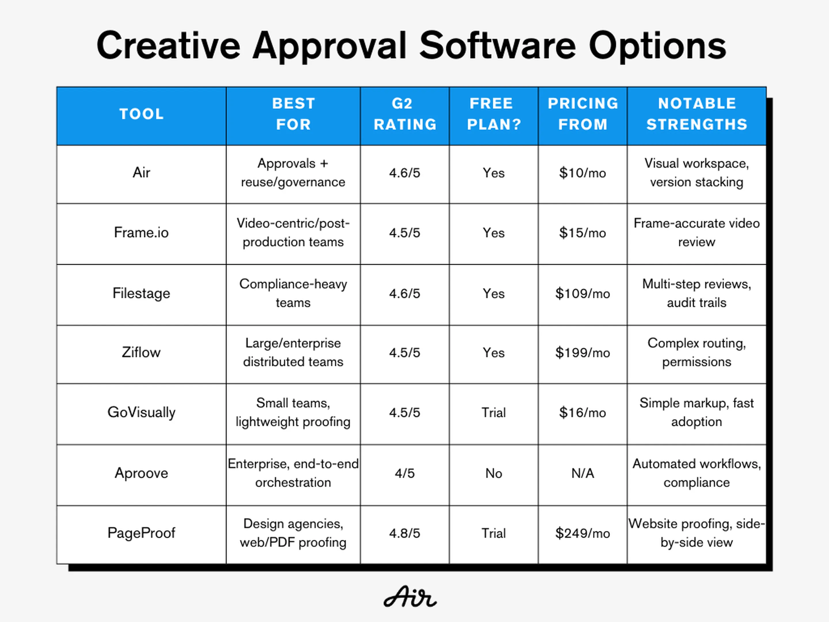 1. Air Best for: Creative teams that need approvals plus reuse and governance