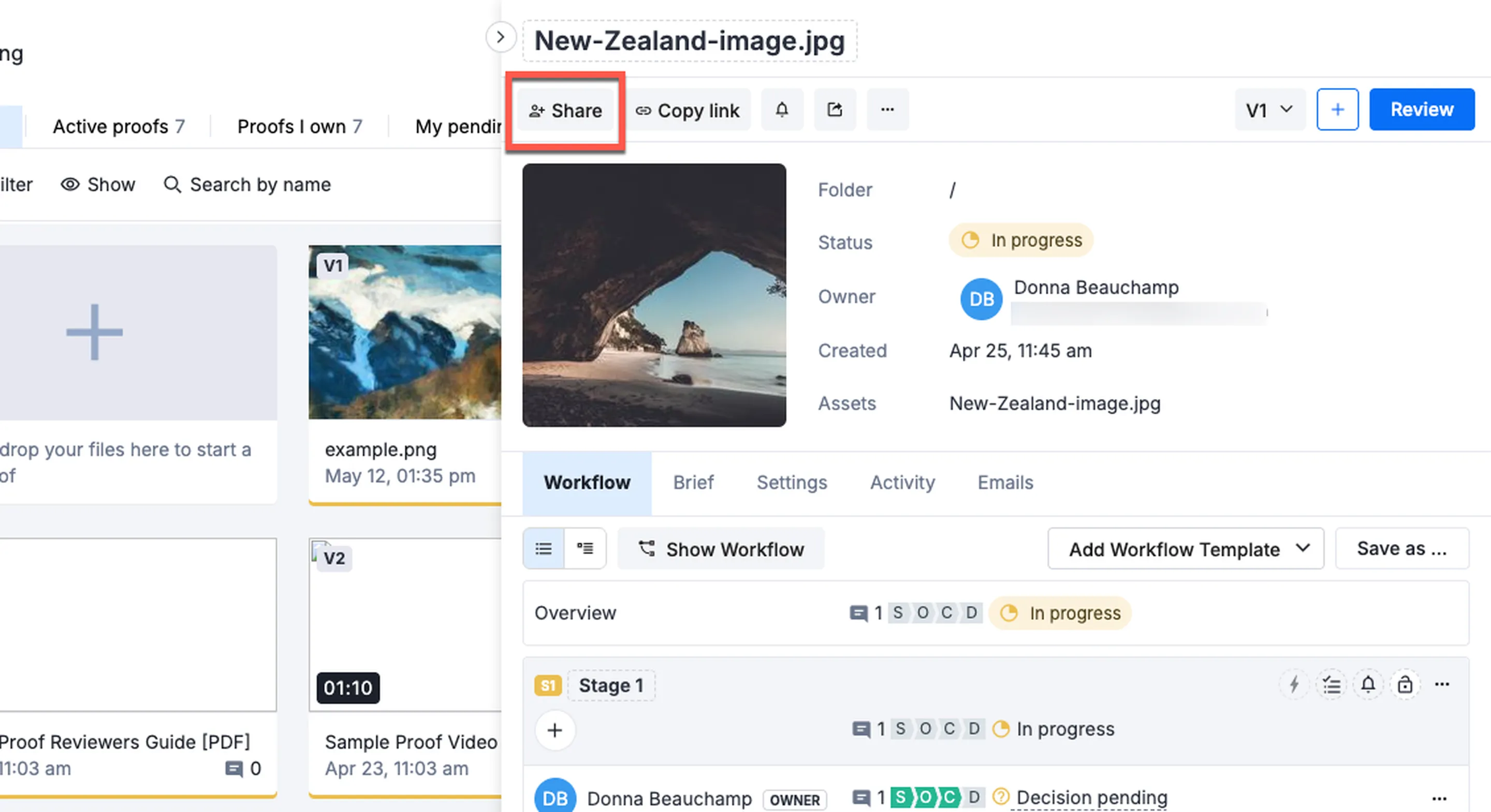 Multi-step reviews: Route files through multiple approval stages (creative, brand, and legal, for example).