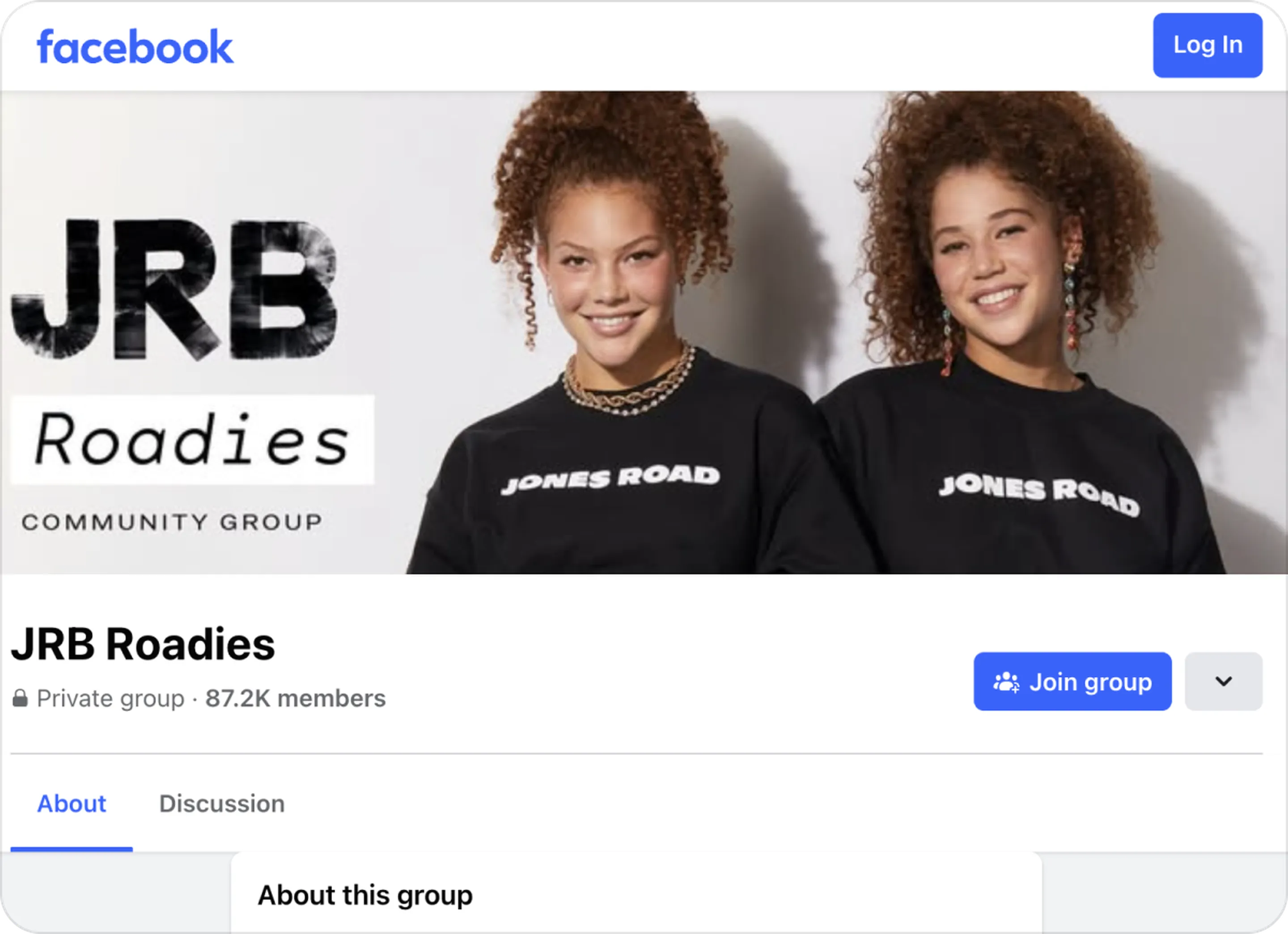 Jones Road's Facebook group (The Roadies, 87K+ members) directly informed their product development and holiday campaign. Their customers didn't just buy - they shaped what got built.