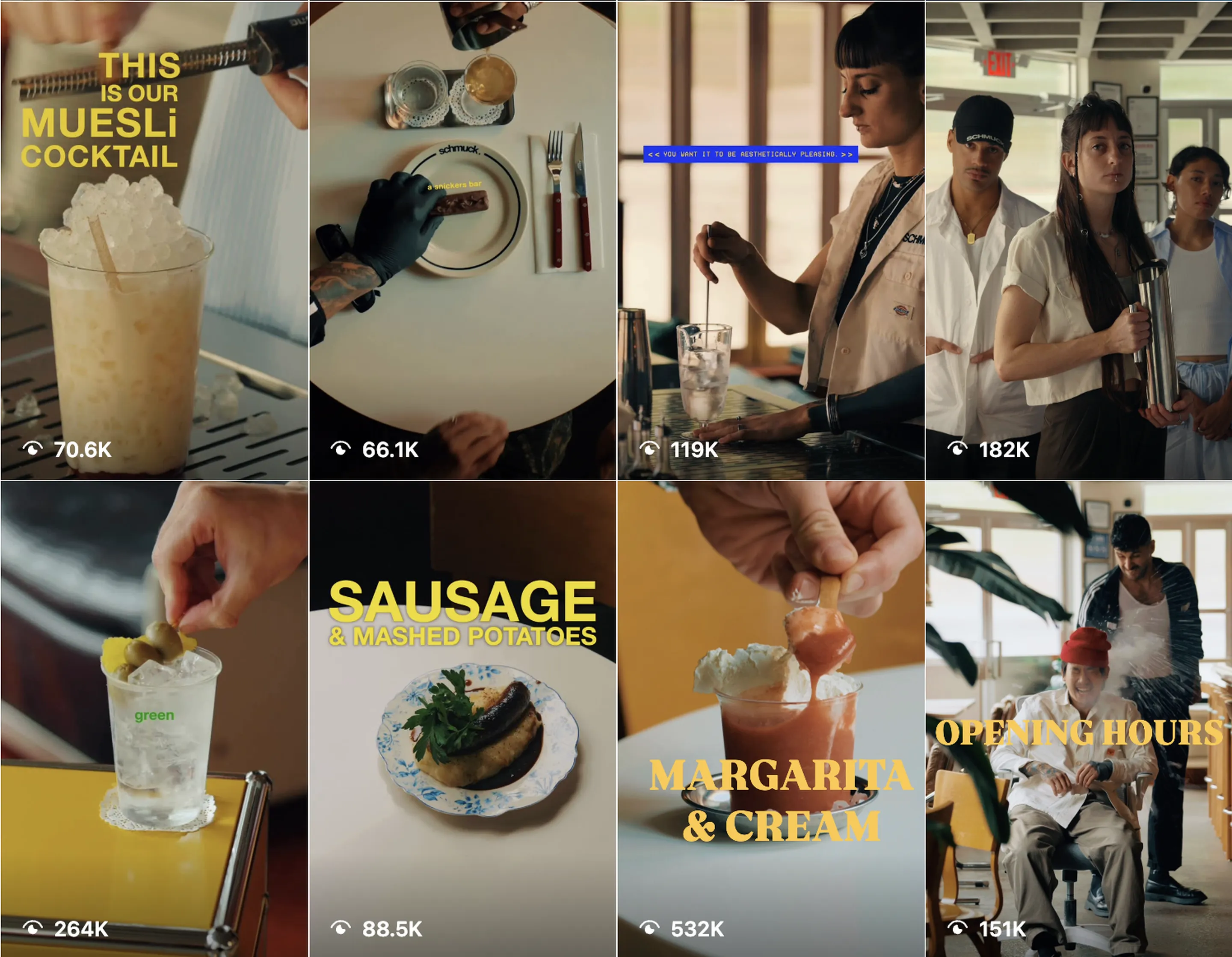 Dishes aren’t oversold. Atmosphere does the heavy lifting in the videos. I don’t feel marketed to, or even like I’m being invited in, I just feel like it’s probably a place I want to hang out based on the characters in the videos and how unserious they take the stuff that most restaurants don’t. That’s an incredible achievement.